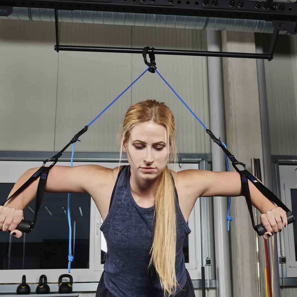 AeroSling ELITE no conoce límites. Su polea permite patrones de movimiento dinámicos como movimientos alternativos o rotatorios, así como para cualquier ejercicio en suspensión, reforzando el componente de inestabilidad. La combinación de asas y correas de pie ajustables ofrece innumerables posibilidades para trabajar, pero eso no es todo: los dos mosquetones de agarre se conectan a los accesorios o contrapesos, lo que aumenta el potencial de ejercicio y proporciona progresión y variación incluso para los usuarios avanzados. El mosquetón de anclaje incluido se puede utilizar para suspender el aeroSling ELITE en casi cualquier lugar, ya sea en una puerta o en el techo, en un poste, en árboles o soportes en el exterior.
