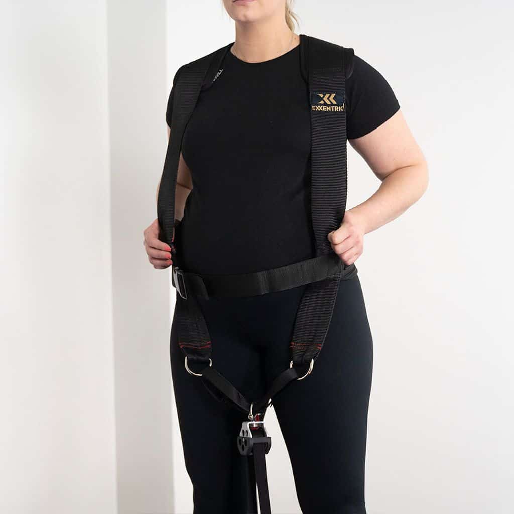 El arnés es esencial para cualquiera que busque maximizar la efectividad de su entrenamiento flywheel con el sistema kBox4 o similar. Su diseño ergonómico permite mantener la presión en la zona de los hombros cuando tiene una posición erguida correcta. Sin embargo, si tiendes a inclinarte hacia adelante, la presión se desplaza hacia la parte inferior de la espalda equilibrando las cargas, lo que reduce la presión y el dolor sobre la propia espalda.