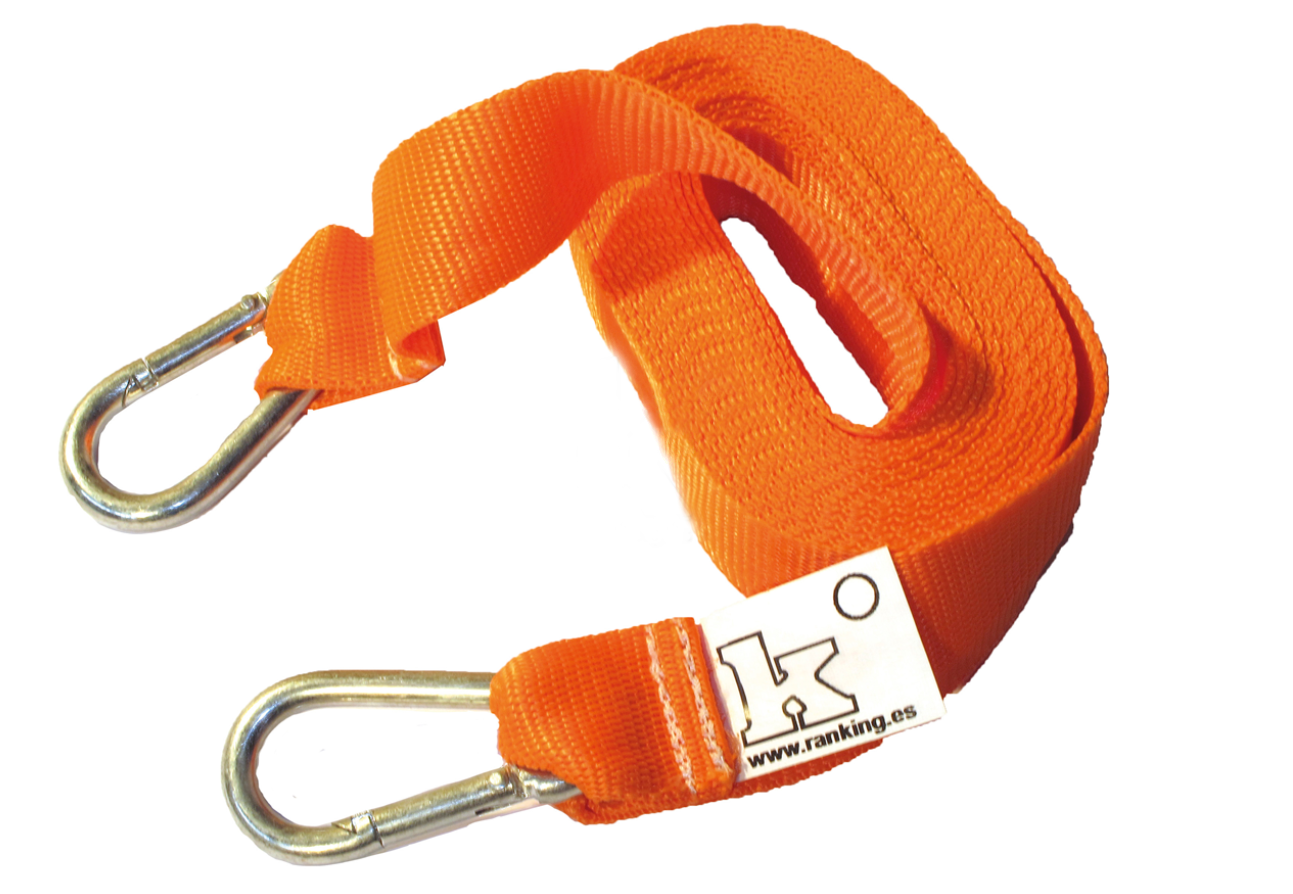 Cinta de 2,5 cm. x 3,5 m. de longitud. Con mosquetones en ambos extremos, para trabajos de arrastre (trineo etc,)