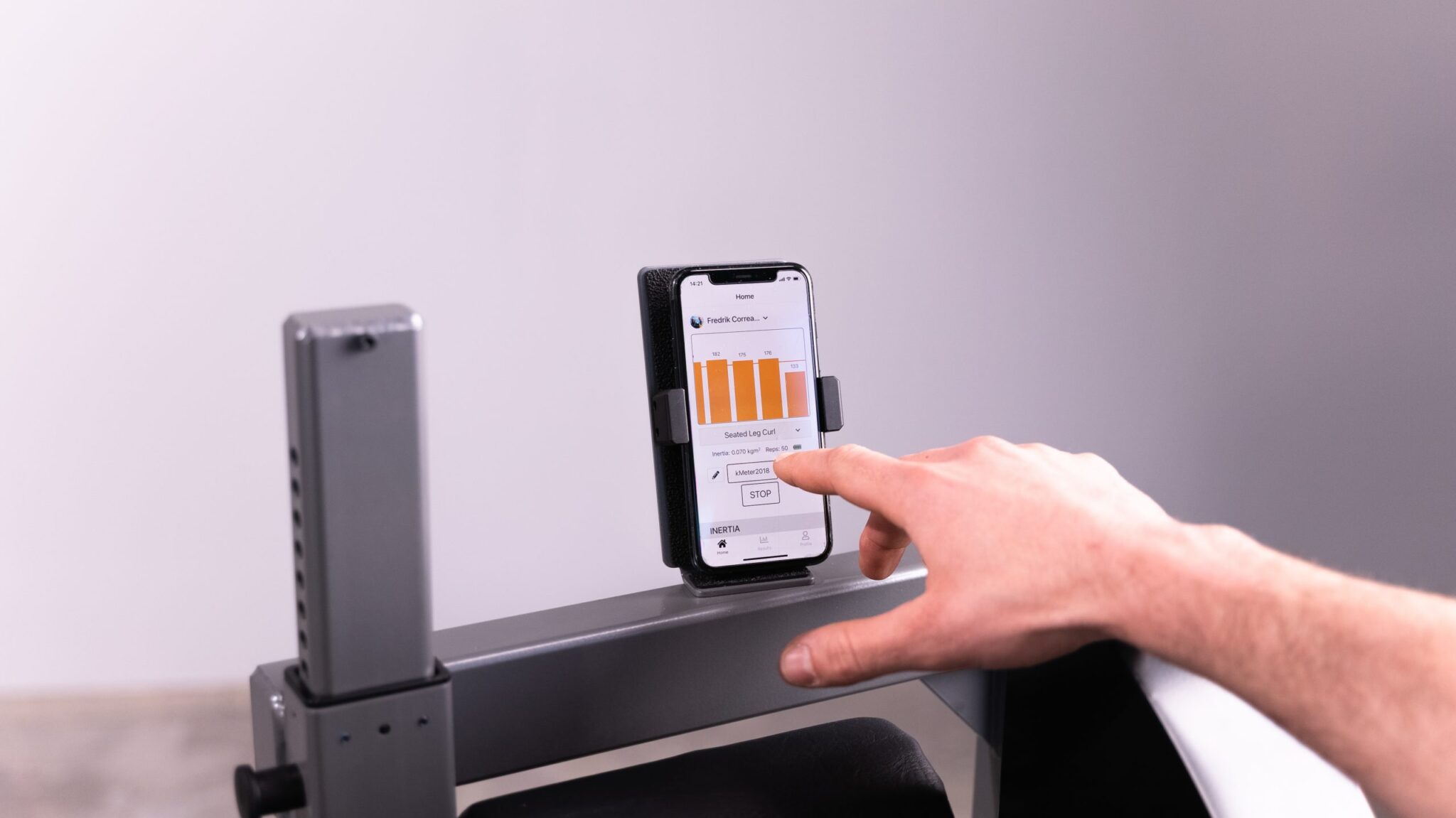 El soporte para el teléfono del LegFlexx permitirá a los usuarios obtener cómodamente información instantánea mientras entrenan con el kMeter II.